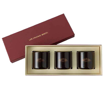 2025ホリデーシーズン限定のミニキャンドルセット。ブラウンカラーの限定容器に、No.912,924,968の3種の香りが室内を優しく包み込みます。